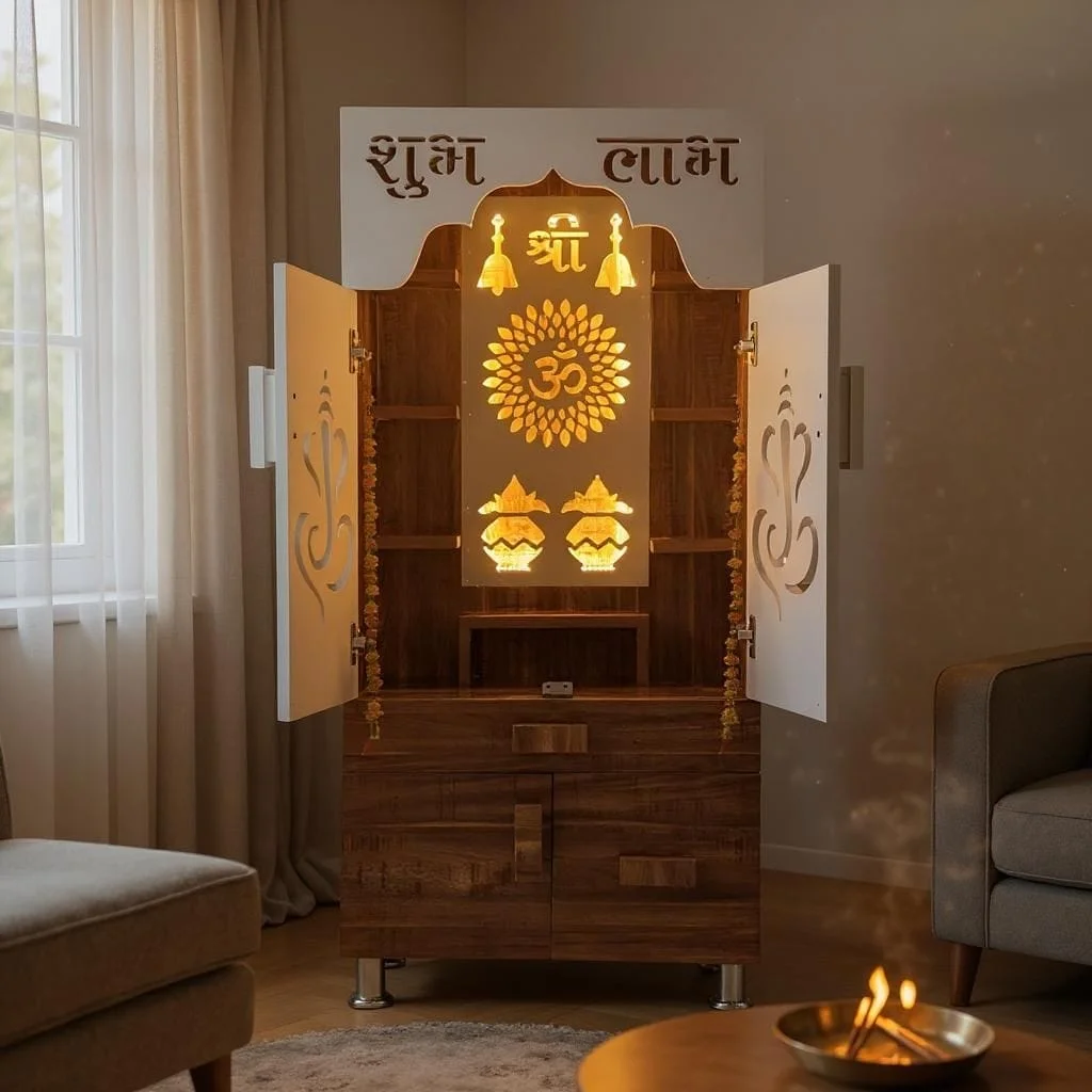 "Elevate your space with divine elegance, our handcrafted wooden mandirs".